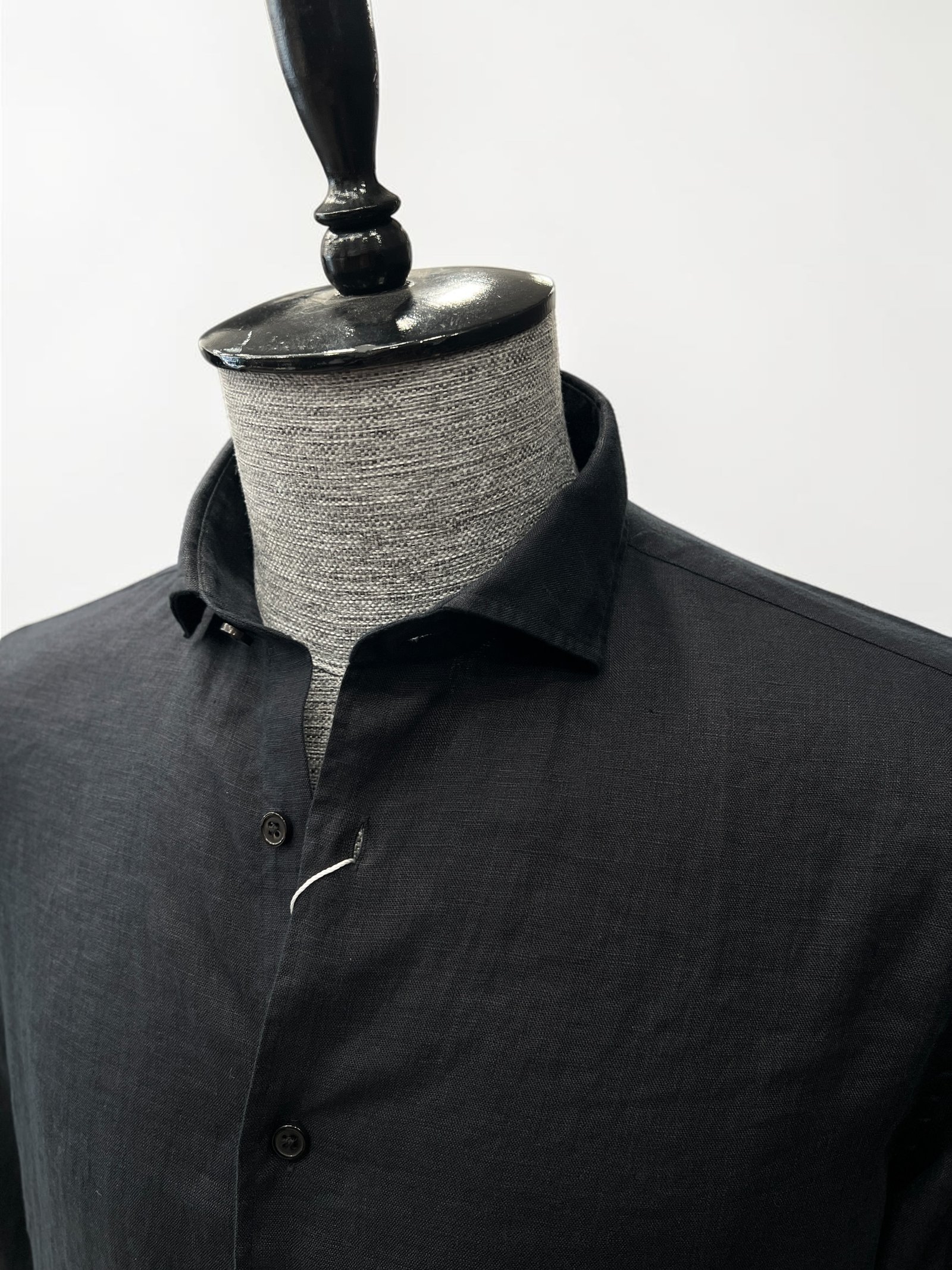 % 100 Keten siyah gömlek , yazın favori gömleği kaliteli işçiliği ve yaka kalıbı ile tasarlandı.