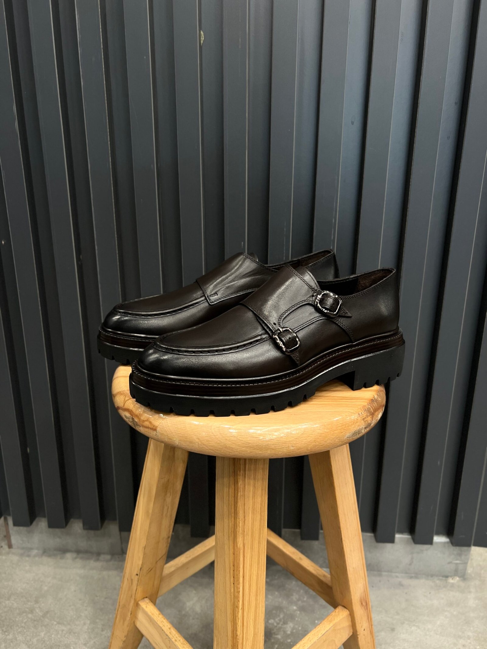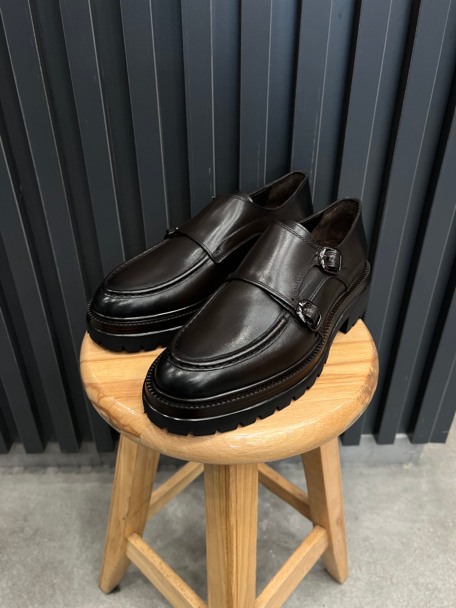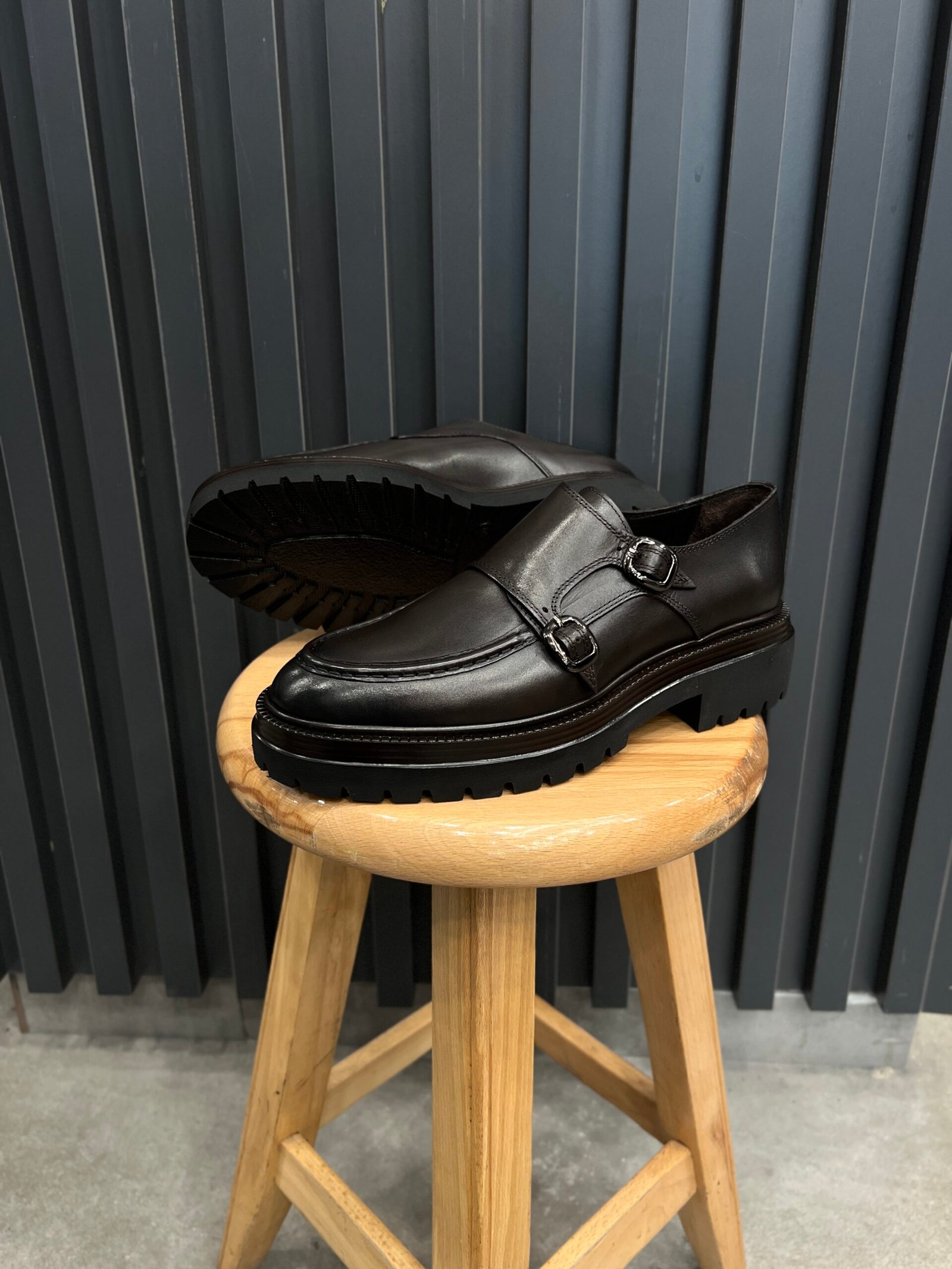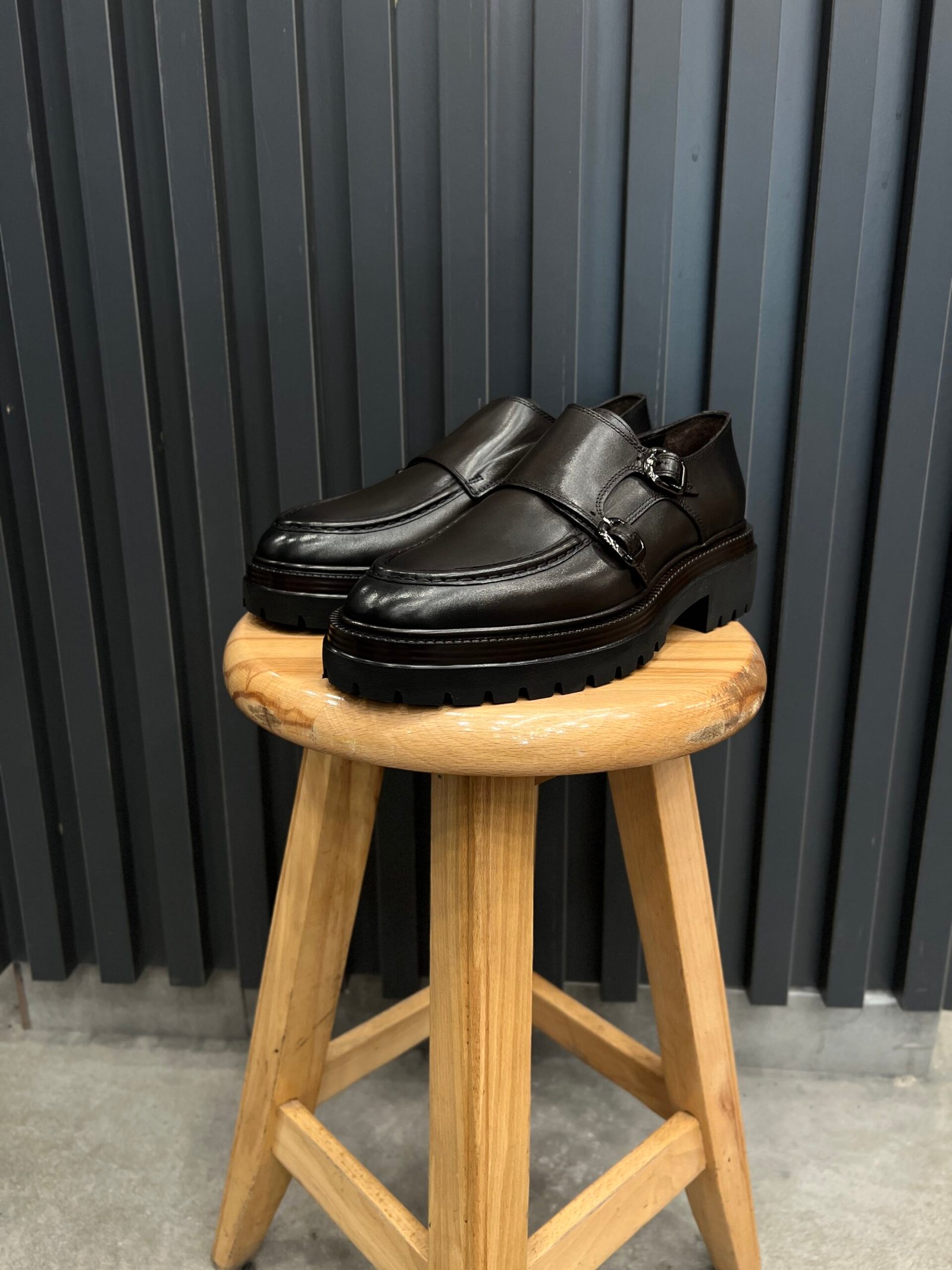 Antik deri koyu kahve çift tokalı ayakkabı yüksek taban ölçüsü ile ister özel gün ,ister günlük kombinlerinizin tamamlayıcısı…