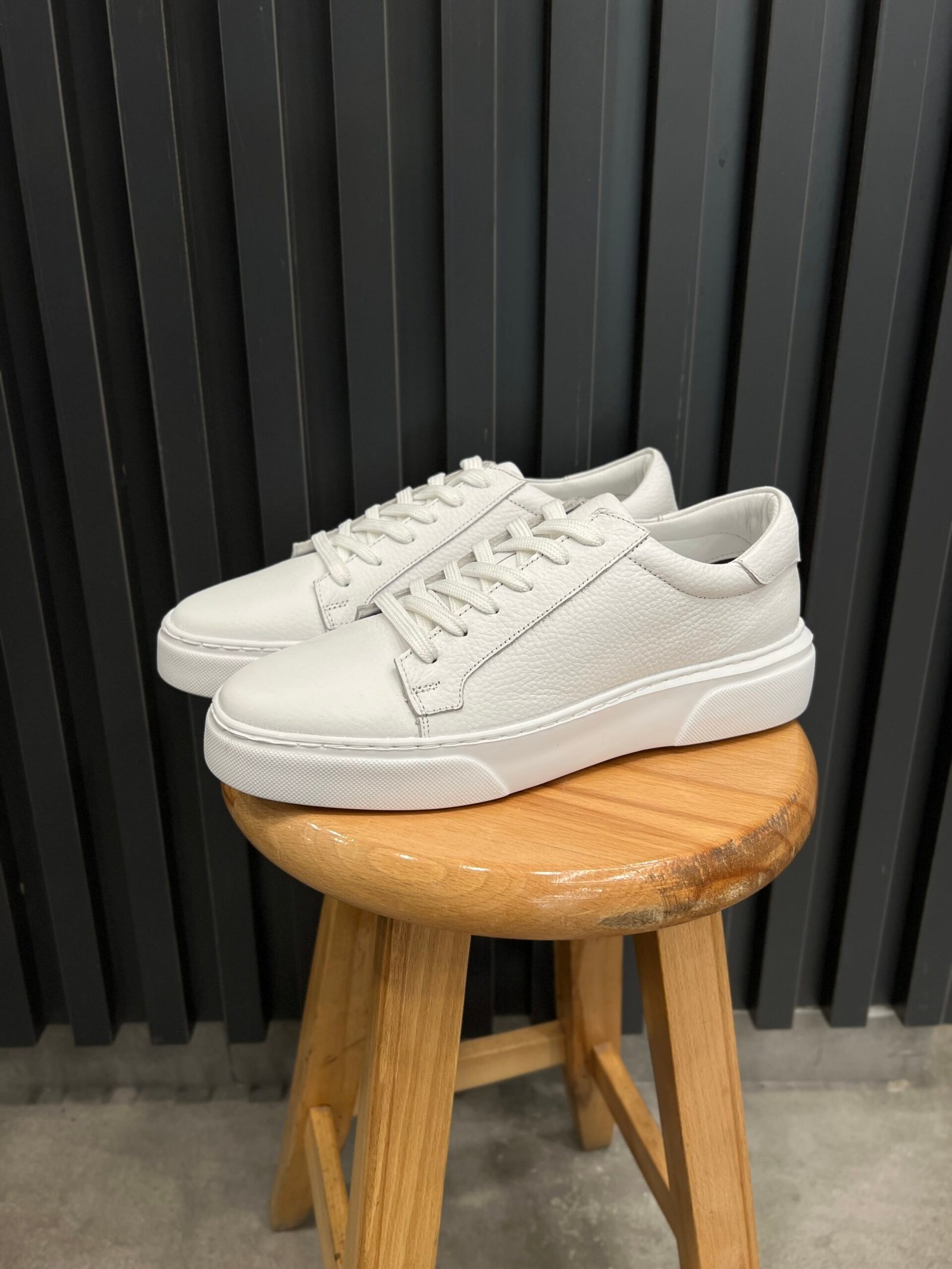 Beyaz deri sneaker ayakkabı, ister takım elbise ister spor kombinlerinizin tamamlayıcısı…