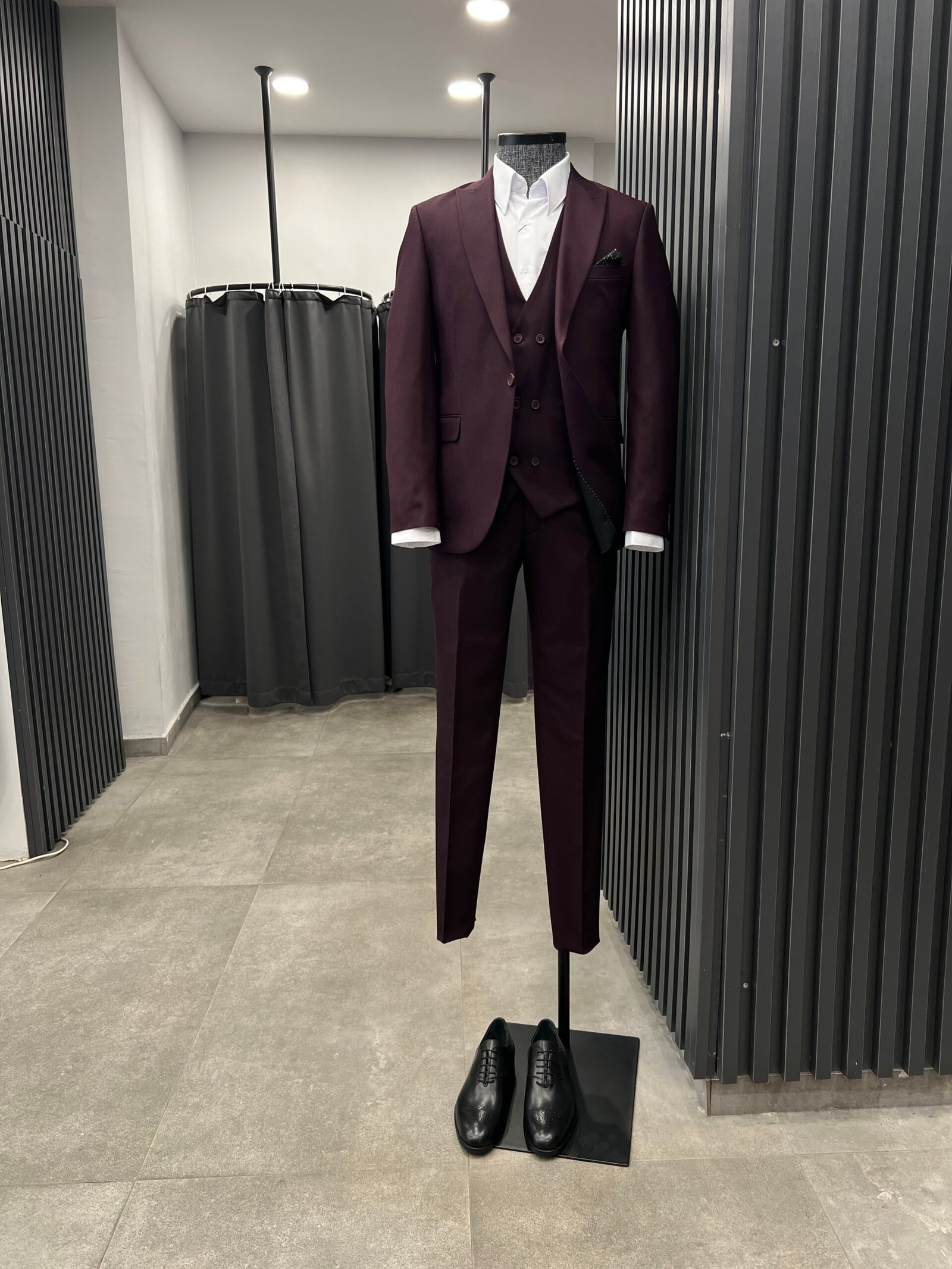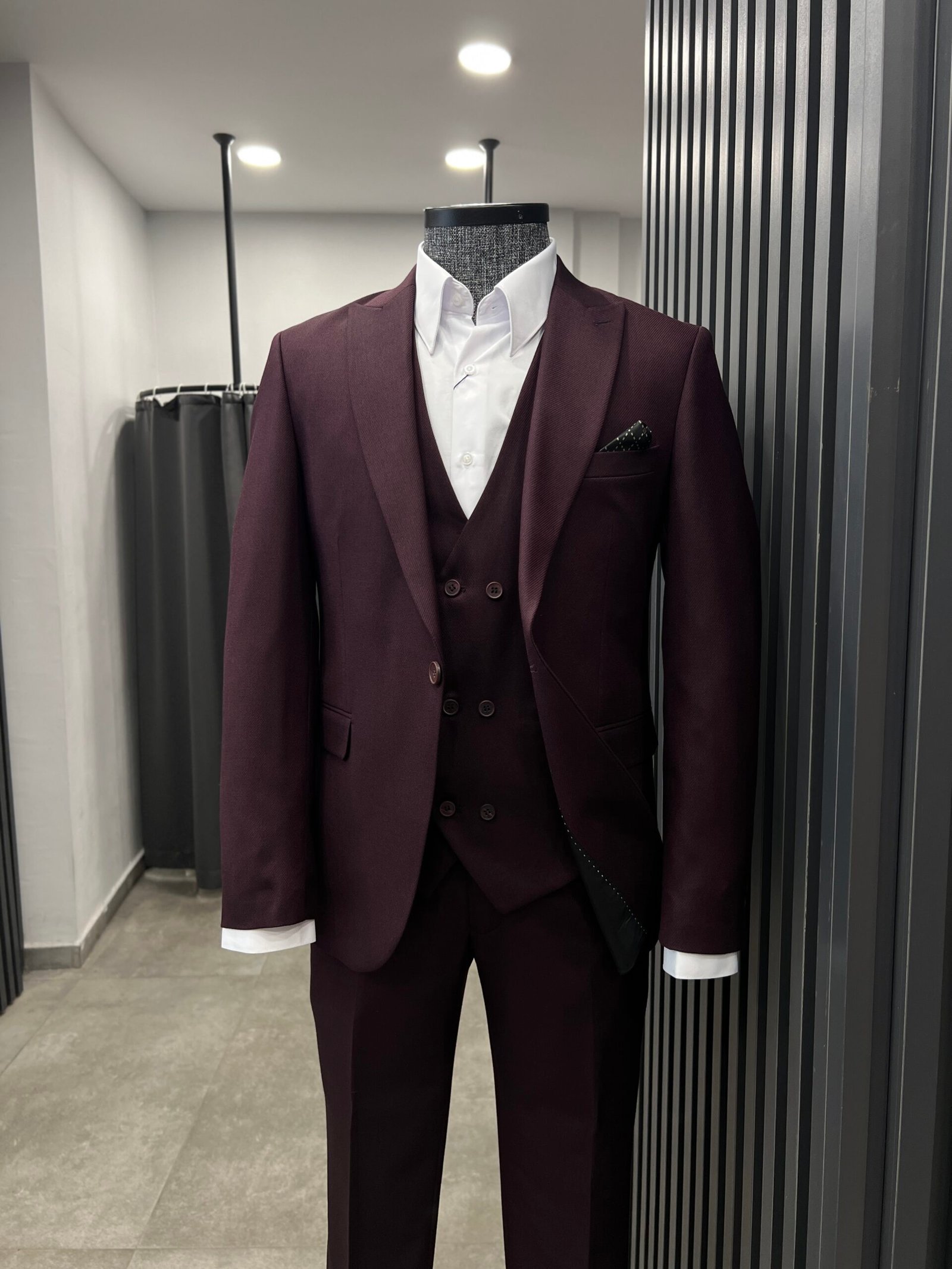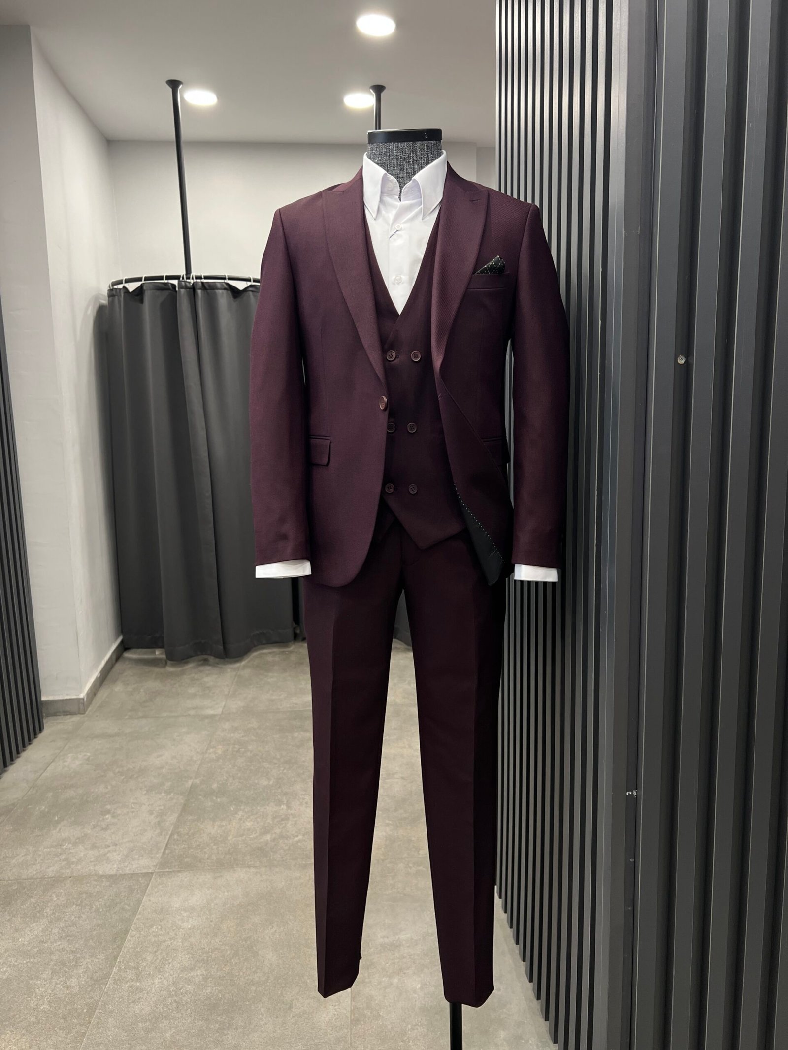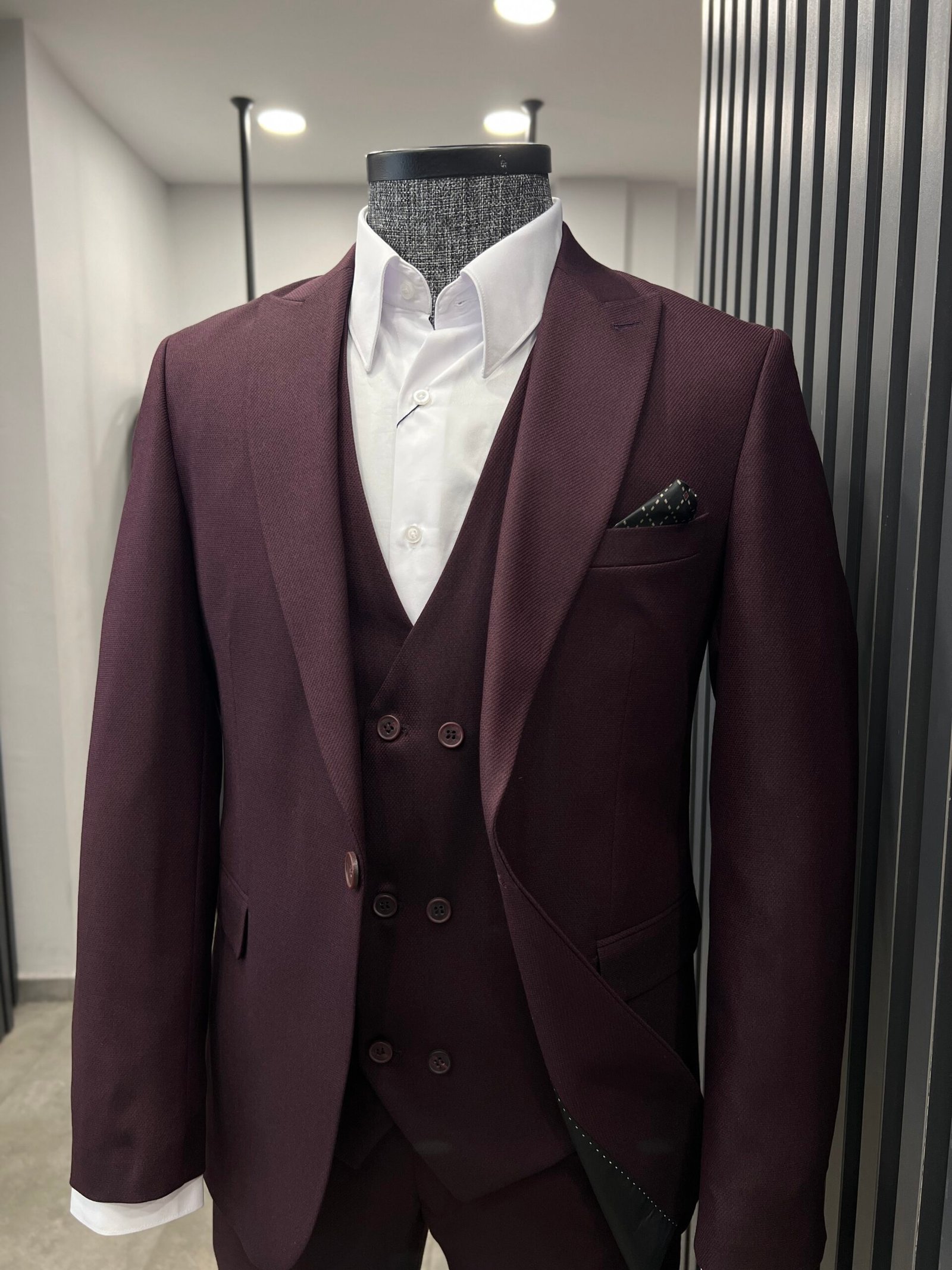 Bordo yelekli takım elbise slimfit kalıp.