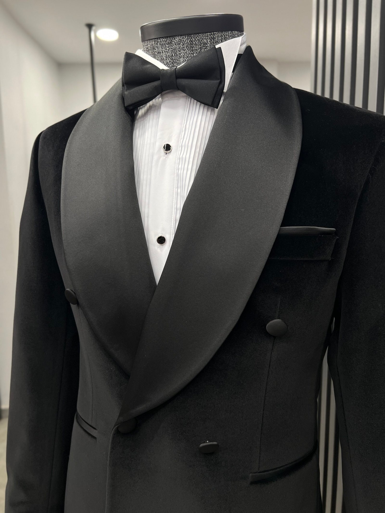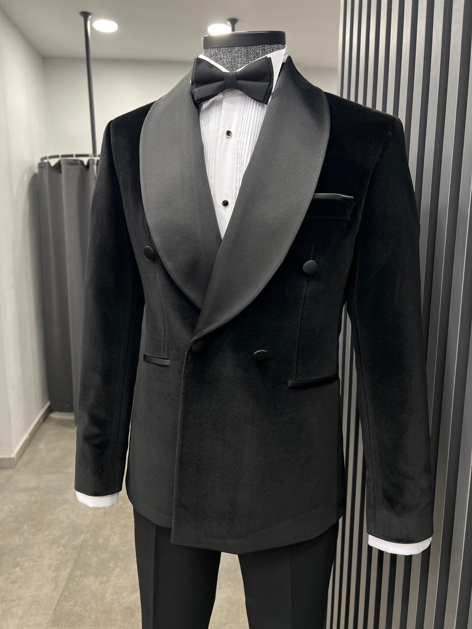 Kadife kruvaze şal yaka smokin ile özel anlarınızda şık ve iddialı olun.
