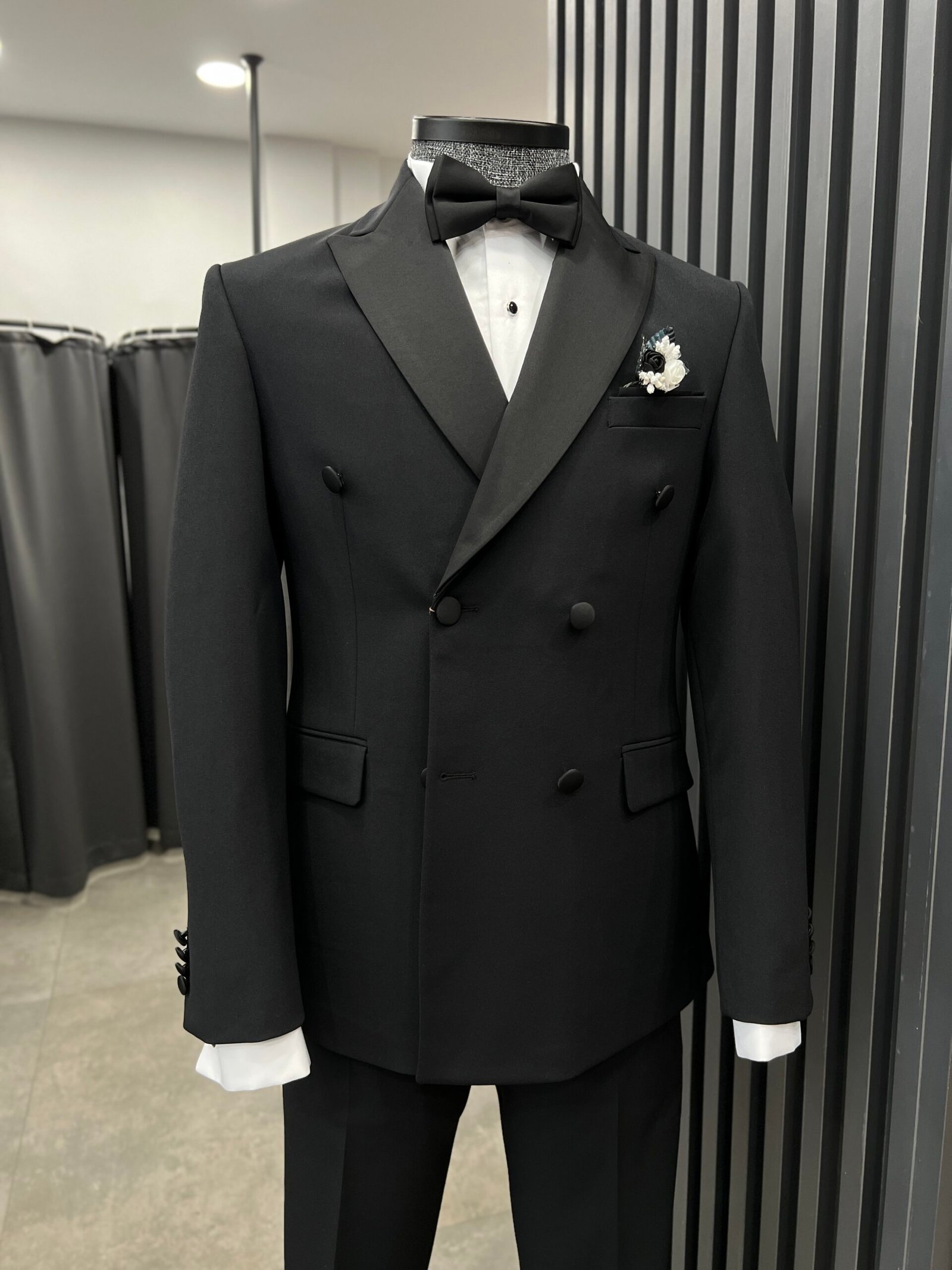 Kruvaze smokin sezonun favrosi,likralı kumaşı ve çıkabilen saten yakası ile özel günlerinizden sonrada kullanabilceğiniz şık bir takım elbiseye dönüşüyor.