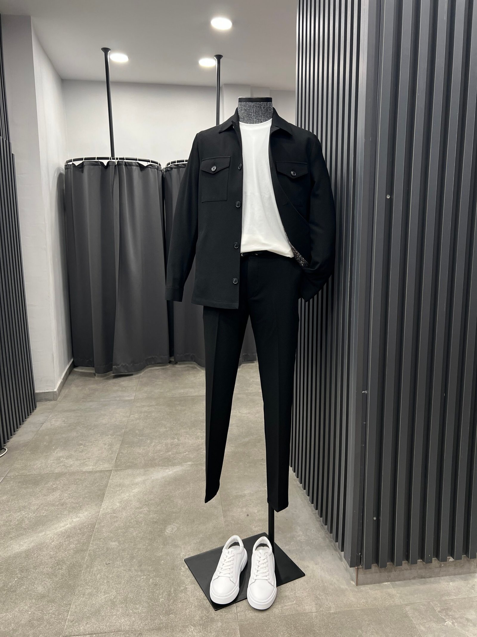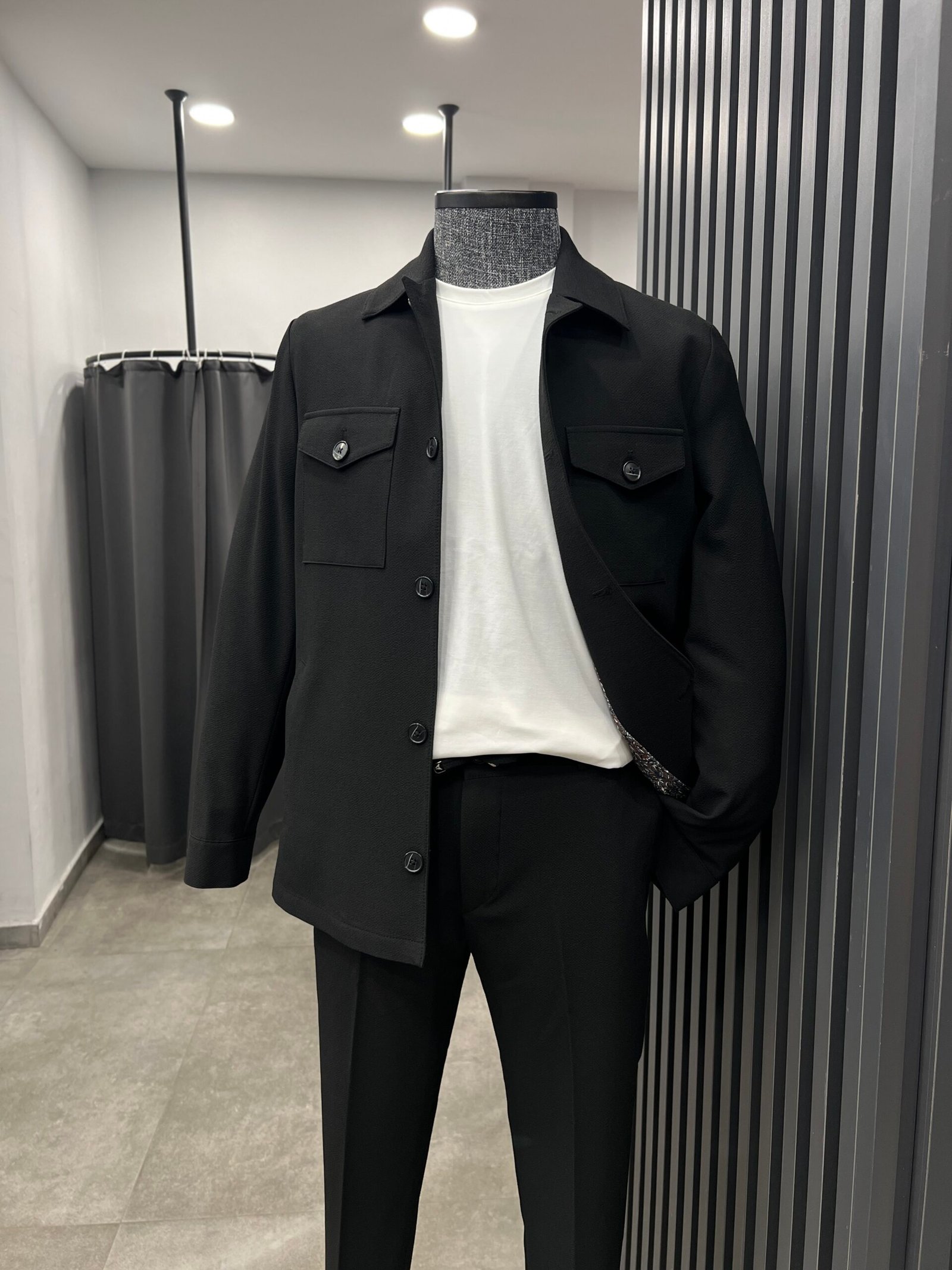 Siyah spor takım elbise ;düğmeli spor ceketi ve jogger pantolunu ile farklı kombinlere olanak sağlayan yeni nesil takım elbise….