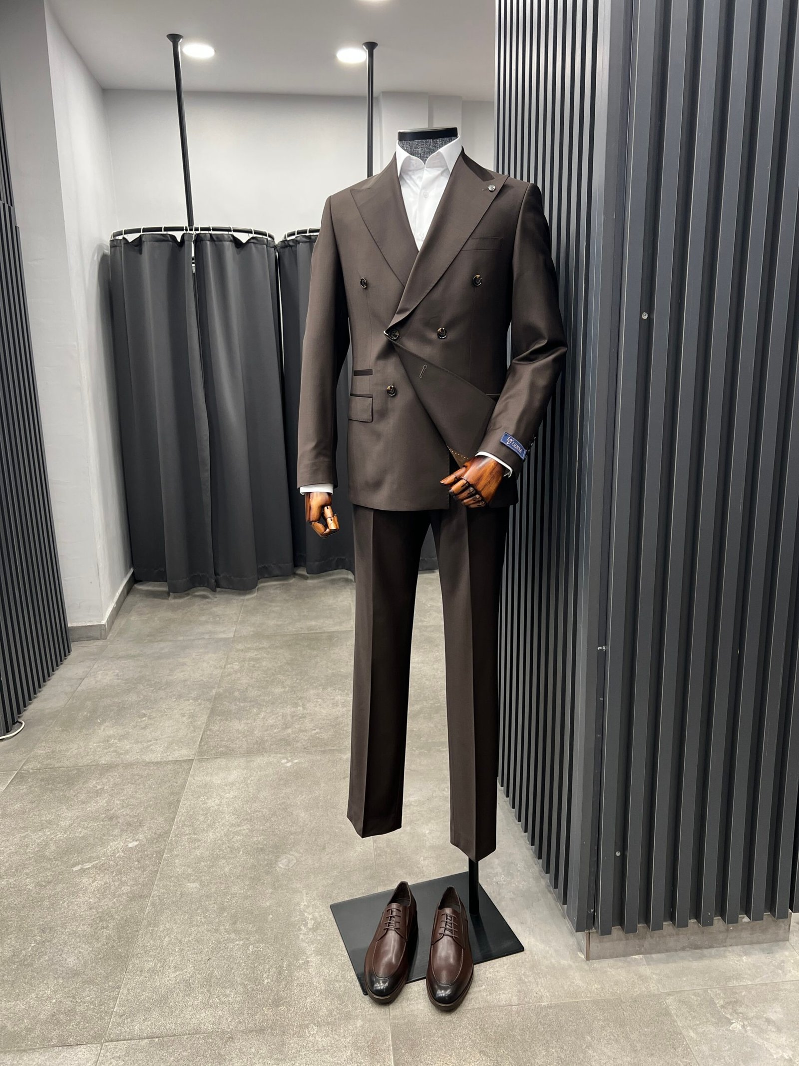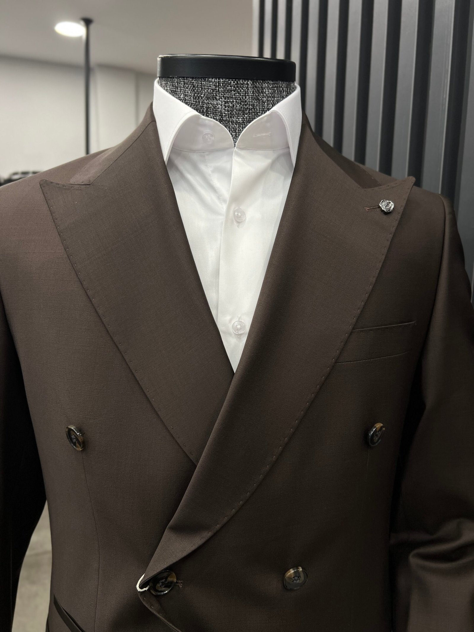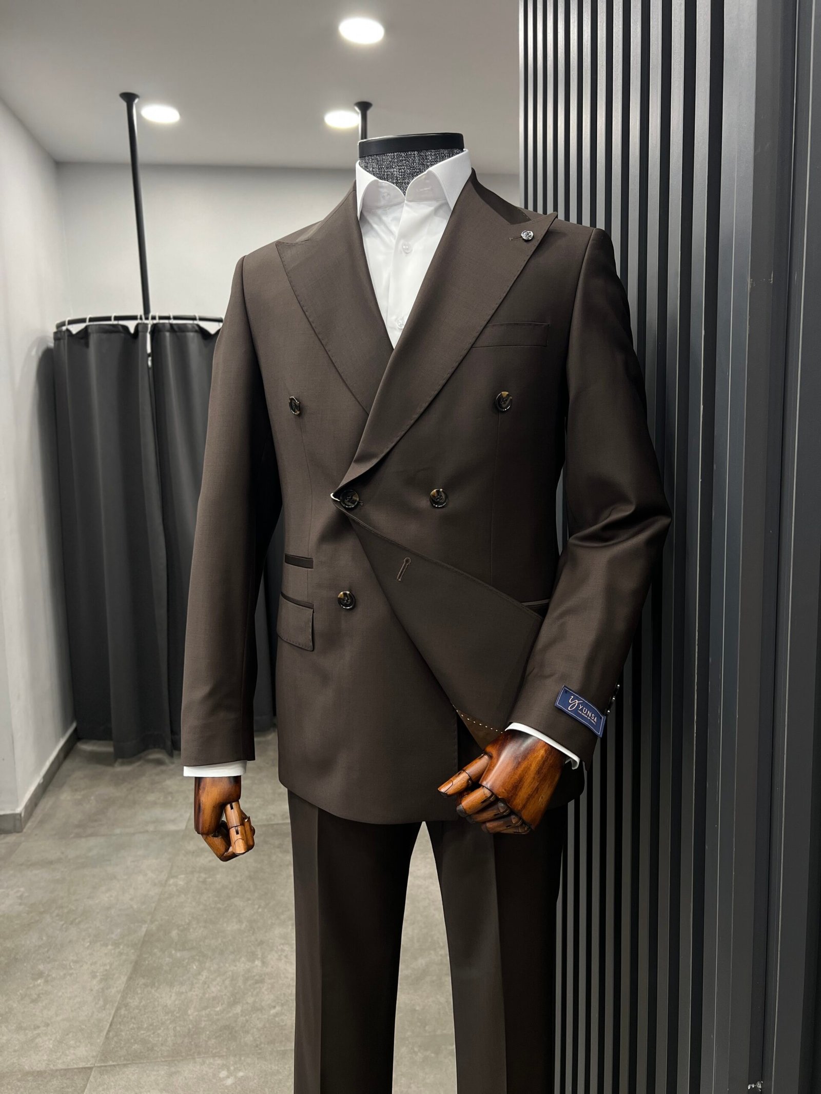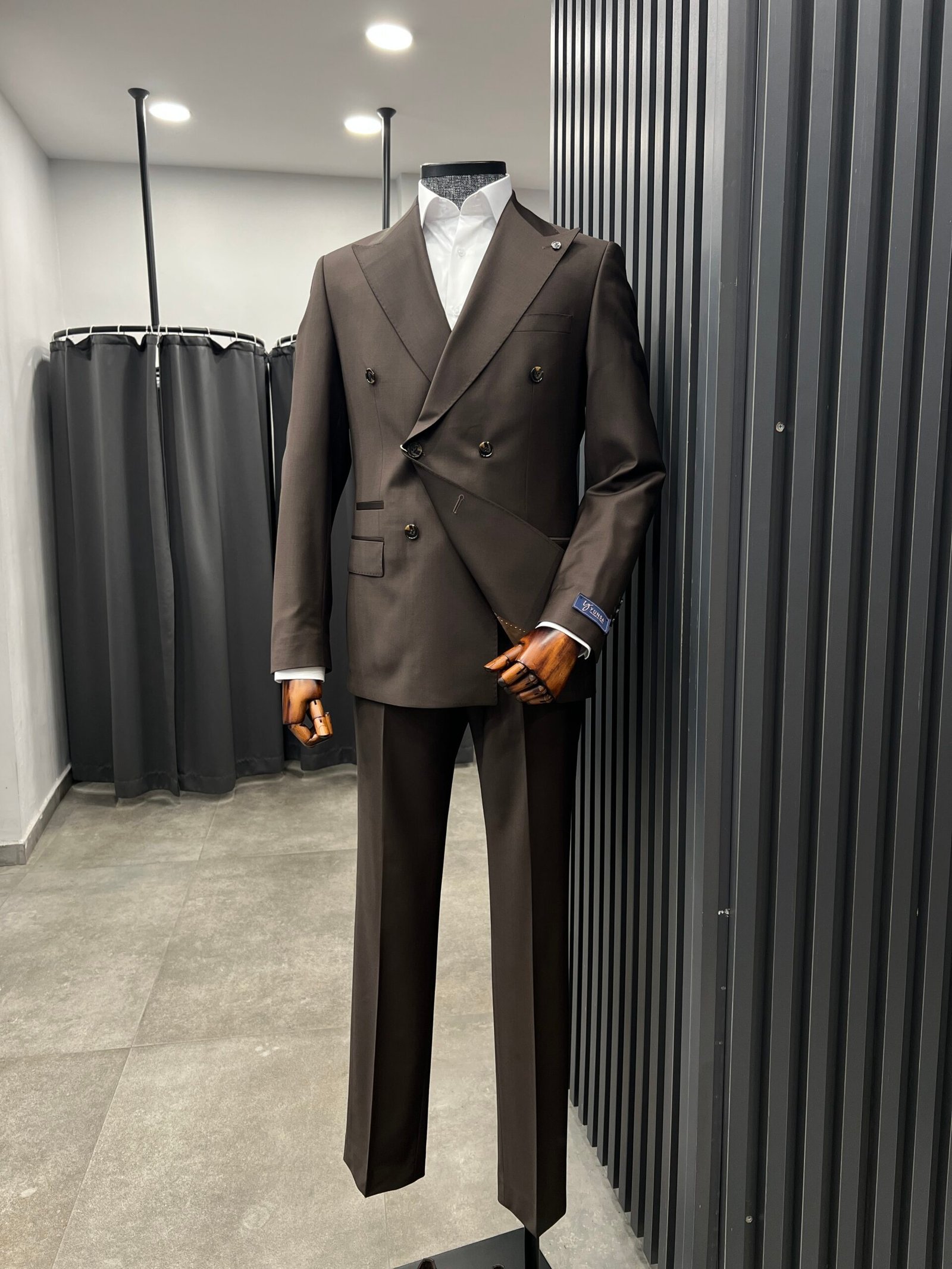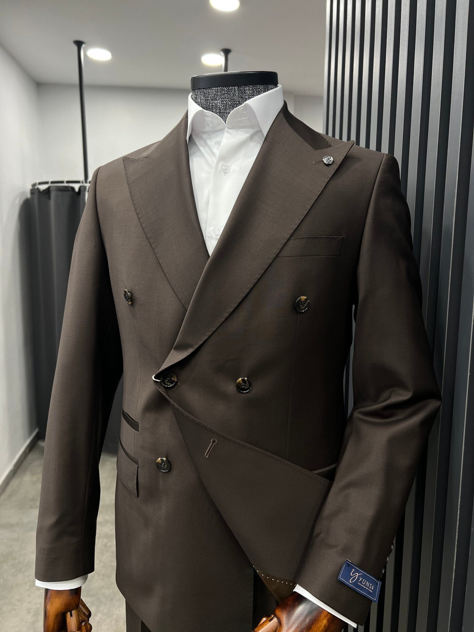 Yünsa Kahve Rengi Kruvaze Takım Elbise